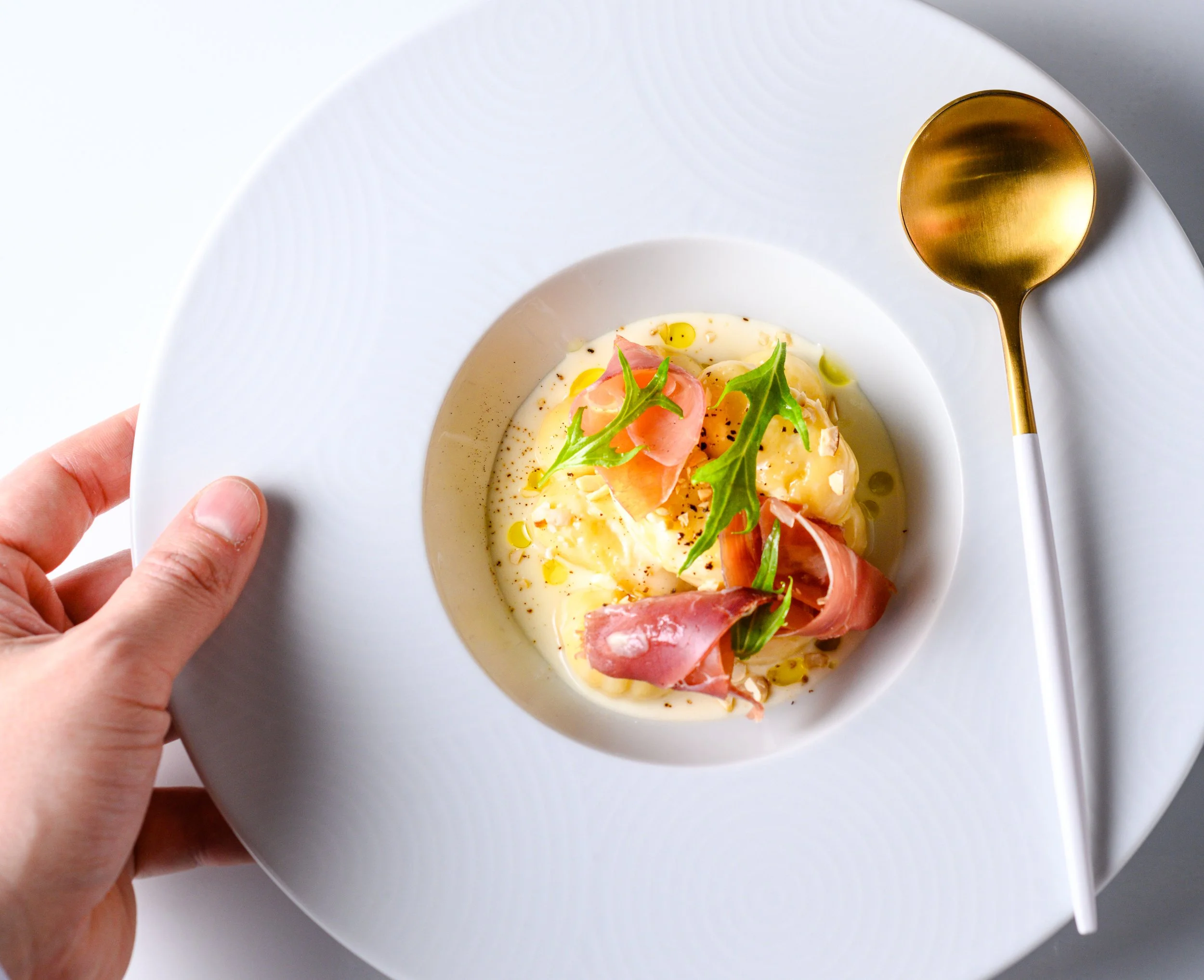 こんなに可愛いスープを見たことがありますか? 12月24日で2周年となるシャンフェ東京。シャンフェ東京の人気を支える武谷シェフは、中学時代に料理を志し、高校・専門学校で学び、横浜「MIKUNI YOKOHAMA」での経験からプロ意識を培いました。卒業後はフォーシーズンズホテルで修行し、 「Motif」やミシュラン一つ星「Est」などで実力を磨きました。 2023年、シャンフェ東京の料理長に就任し「玉ねぎのスープ」などの人気料理を手掛けます。今回は、料理の哲学として素材の良さを引き出すこと、細部まで拘り抜く武谷シェフの料理について迫っていきます!
