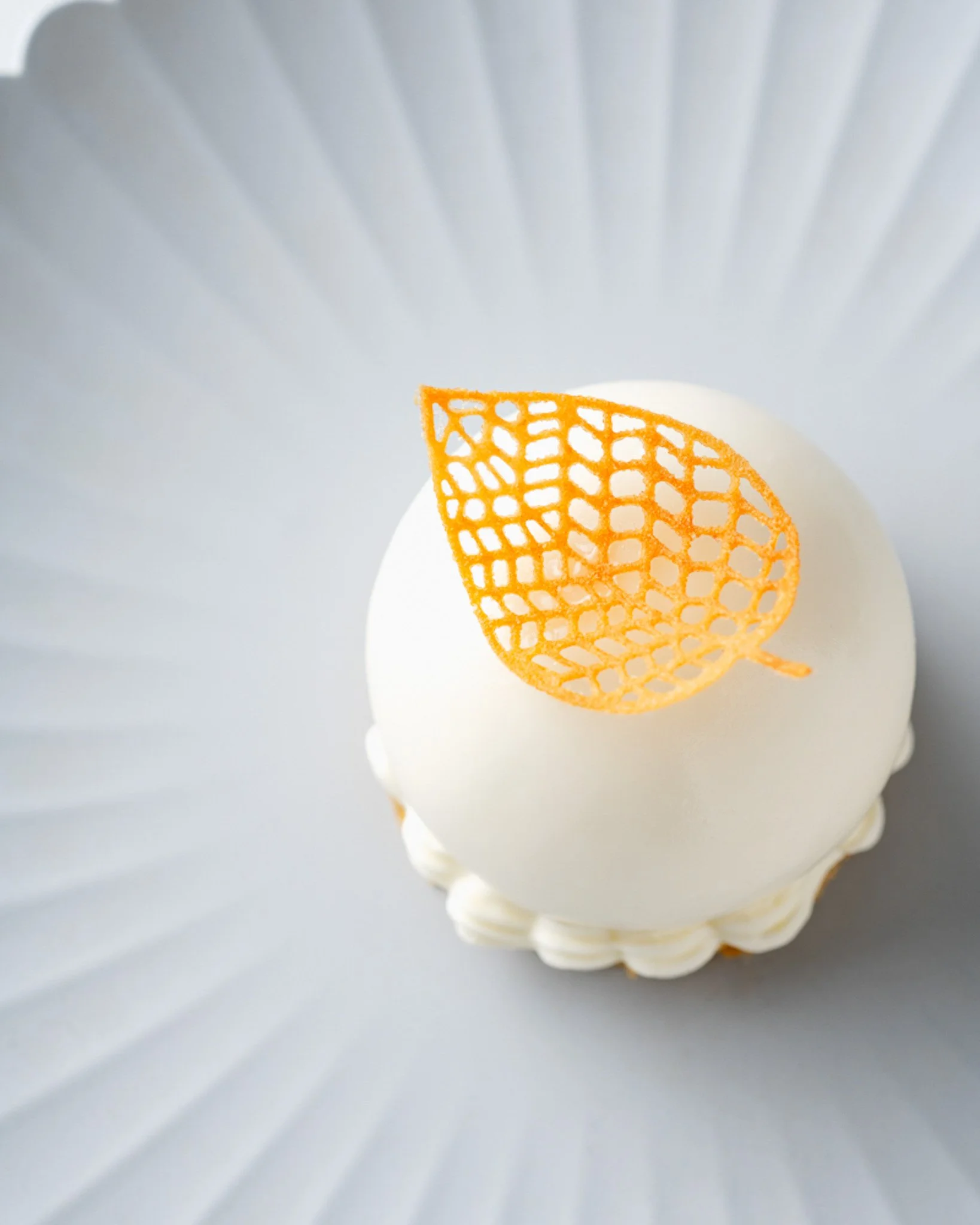 生地には香り高い紅茶を濃く抽出し、白いまんまるはココナッツとメレンゲ、生クリームで作った柔らかい甘みのココナッツムース。その中は二層の紅茶ムースとガナッシュを閉じ込め、何層にもなる工程を時間を掛けて制作しているため、今までにない全く新しいココナッツと紅茶のケーキを味わうことができます。