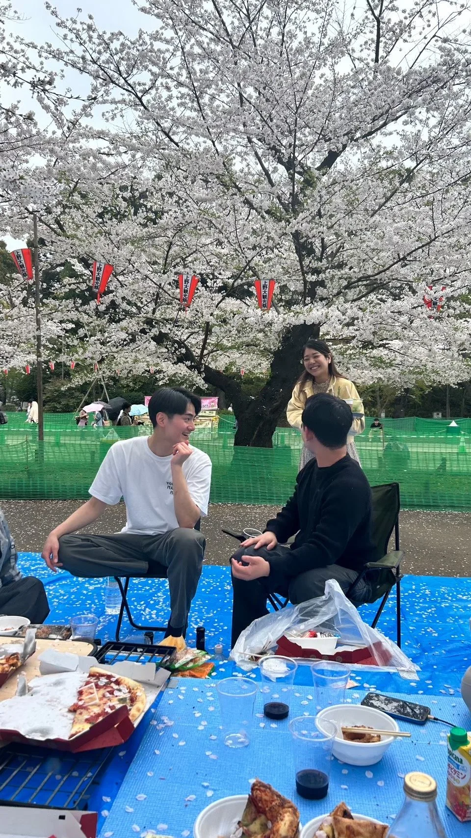 Here’s a snap from our staff’s cherry blossom picnic last year — full bloom, falling petals, and tons of fun.