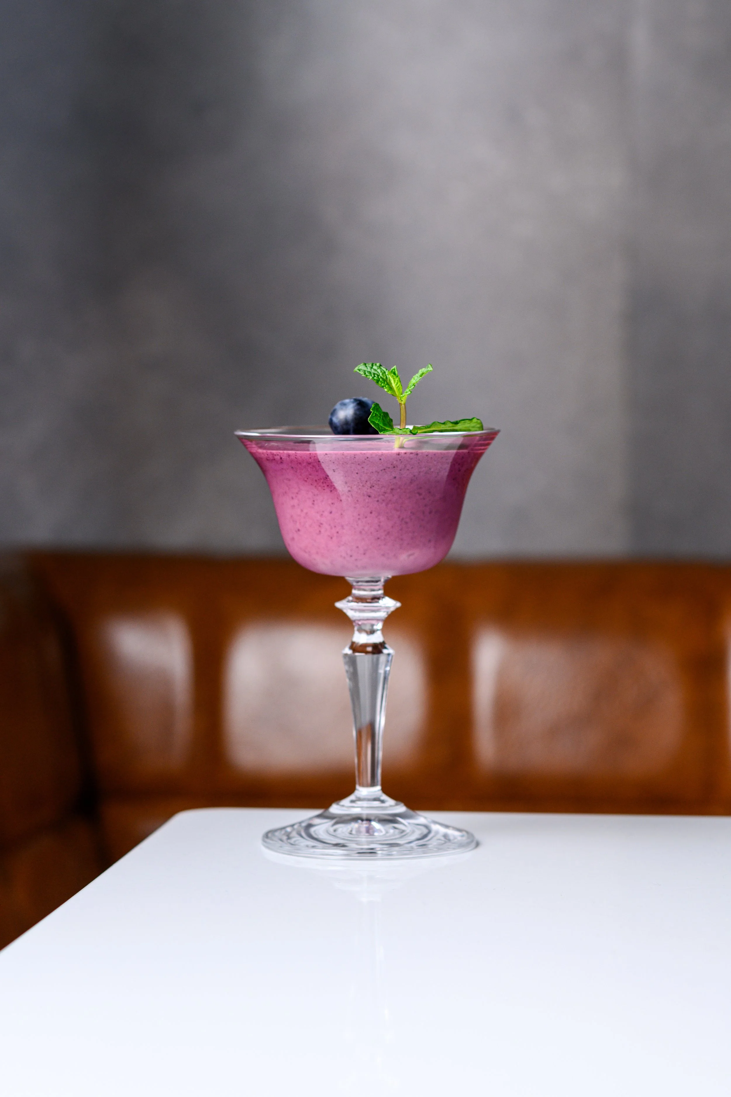 A rich and popular dessert cocktail inspired by blueberry cheesecake.